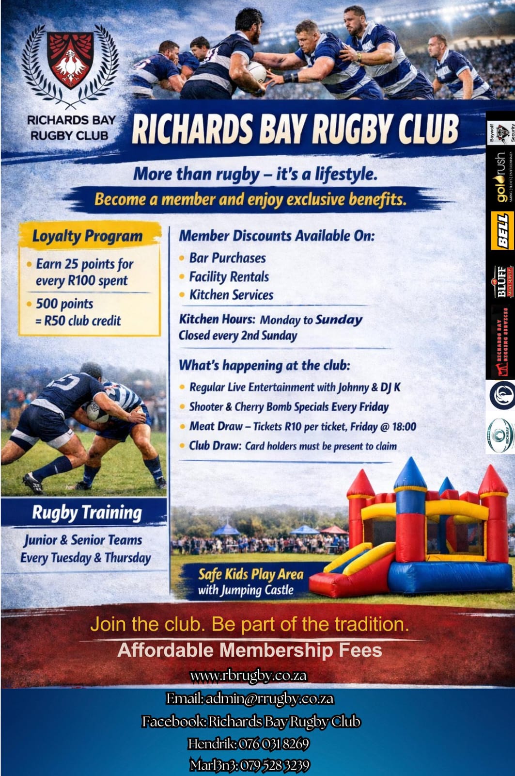 Three decades ago, in the growing town of Richards Bay, some thirty rugby enthusiasts attended a meeting at the then Alusaf canteen (now Bayside Aluminum). What was on the agenda? The formation of the Richards Bay Rugby Club. The Chairman at this founding meeting was Trapie Truter, the Town Clerk at the time.